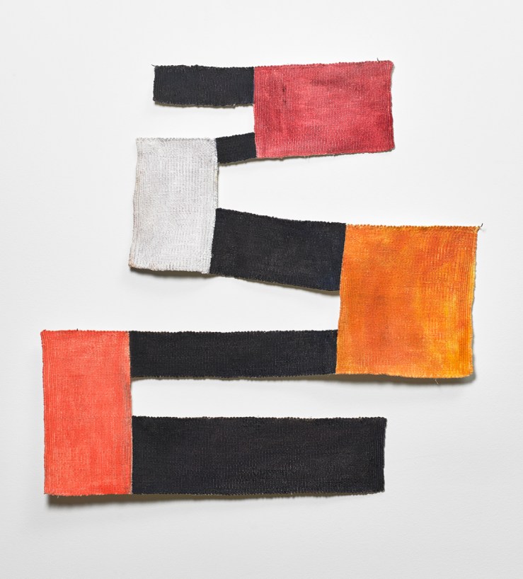 acrylic and dye on handwoven canvas (cotton warp and weft; fully selvaged)
