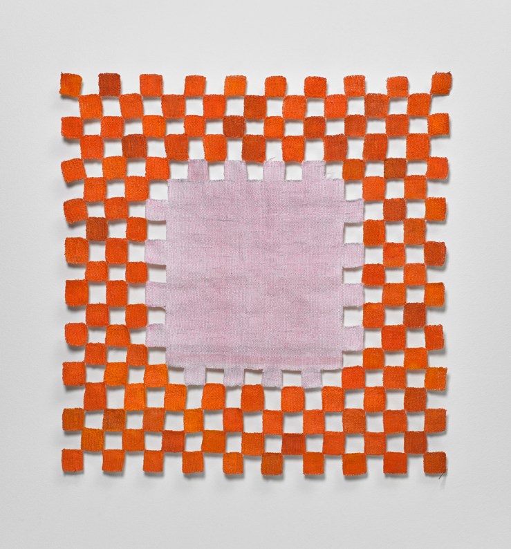 cochineal and oil on handwoven canvas (linen; fully selvaged)